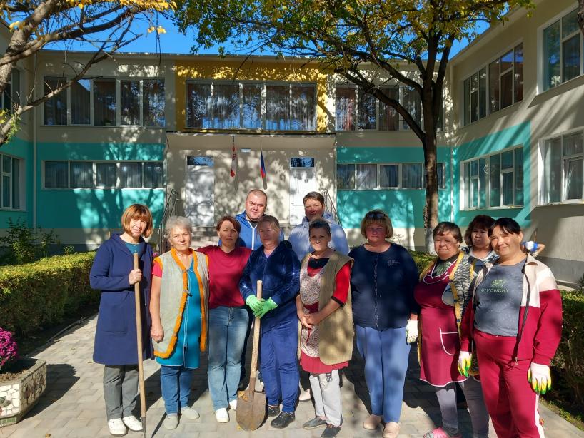 Коллектив нашего детского сада вышел на уборку территории учреждения.