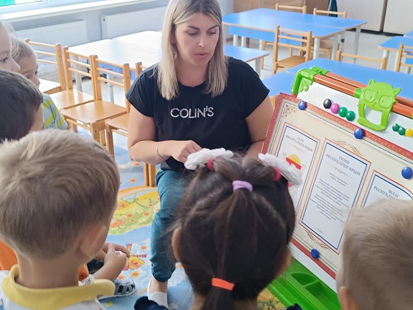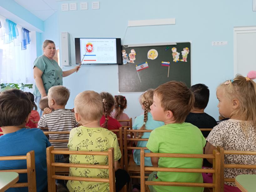 24 сентября в нашем детском саду прошли познавательные тематические беседы во всех возрастных группах, в ходе которых дети учили и вспомнали, какие государственные символы существуют в Республике Крым, что символизируют цвета флага и изображение на гербе. Было организовано прослушивание Гимна Республики Крым, просмотр презентации «Крым наш общий дом», поиграли в дидактические игры. Наши дети с уважением относятся к символам родного полуострова, растут патриотами, любят Родину и гордятся тем, что живут в Крыму!