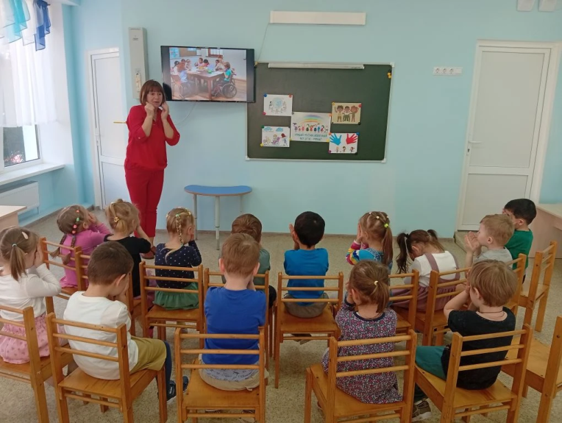 - мультфильмы: «Цветик-семицветик», «Гадкий утенок», «Про Диму». С большим интересом педагоги и воспитанники создавали плакаты: «Мир, доступный каждому», «Дари добро!». «Цветок добра». Были организованы игры: «Мы похожи – мы отличаемся», «Помоги другу», «Определи и назови предмет на ощупь», «Скажи доброе слово». Для родителей воспитанников и педагогов были подготовлены консультации: «Каждый ребенок особенный», «Все дети равные», «Инклюзивное образование».
