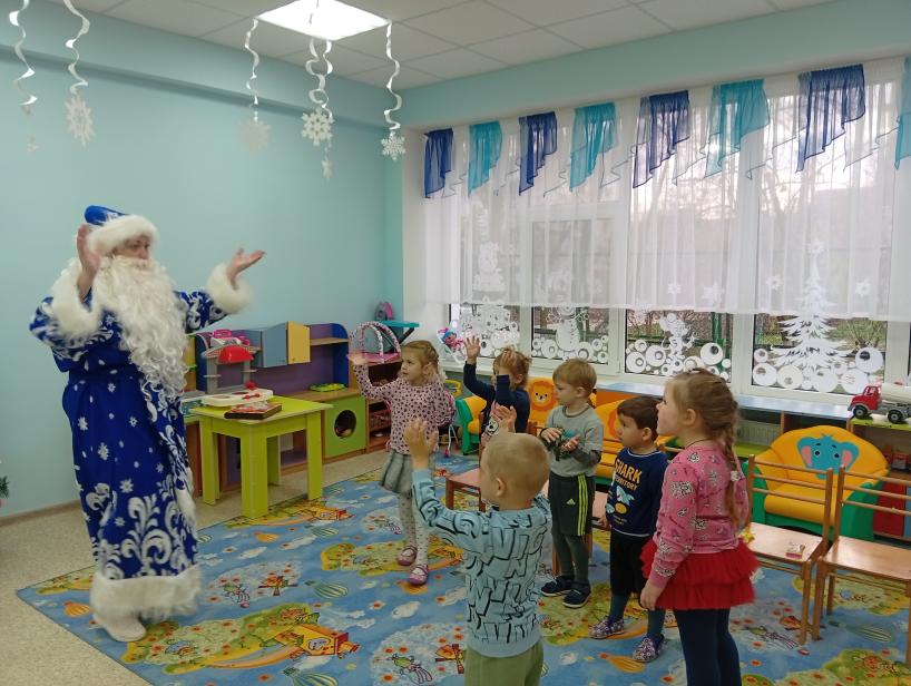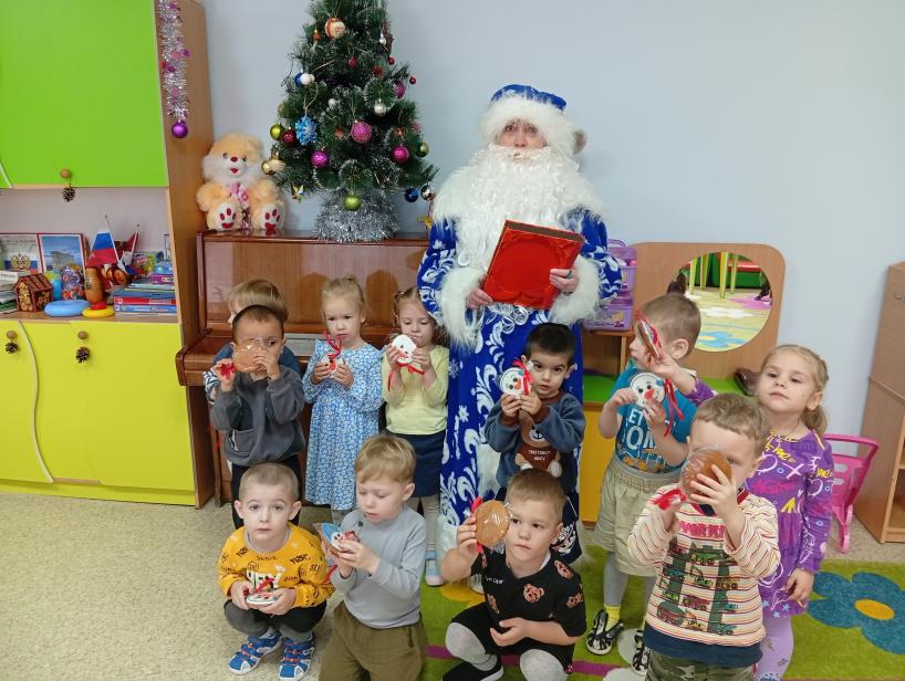 Играл с малышами, водил хороводы, пел песни, а в конце одарил подарками!